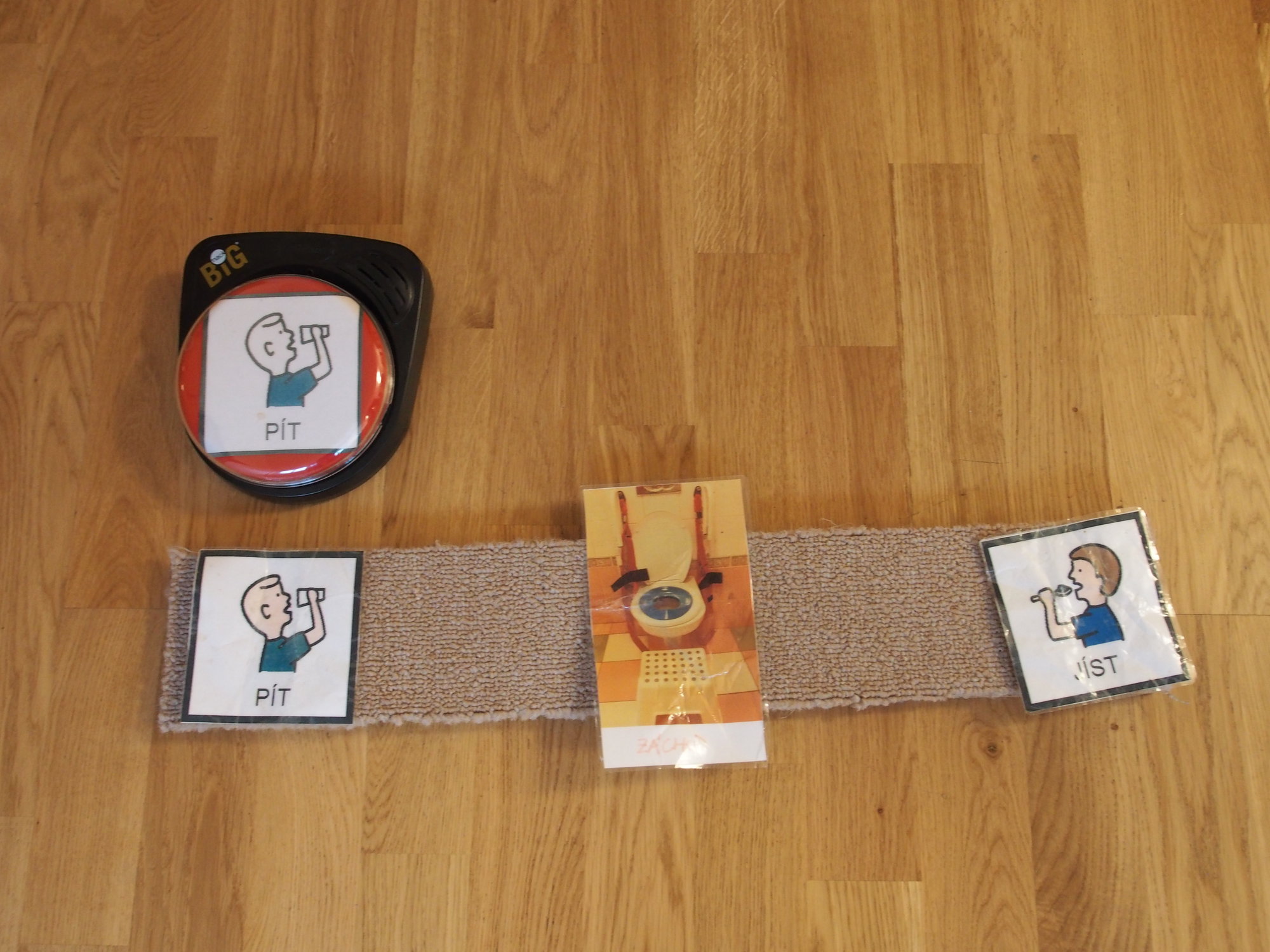 - Big Mac nebo Step by Step – pomůcka s hlasovým výstupem, tzv. komunikátor, připravit si můžeme jeden nebo dva (v tom případě je dobré mít je barevně odlišené).